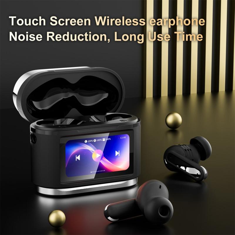 BD2 Smart Digital Display Wireless Kopfhörer / TWS Ohrhörer mit Ladeetui - Touchscreen, ANC & ENC Noise Cancelling