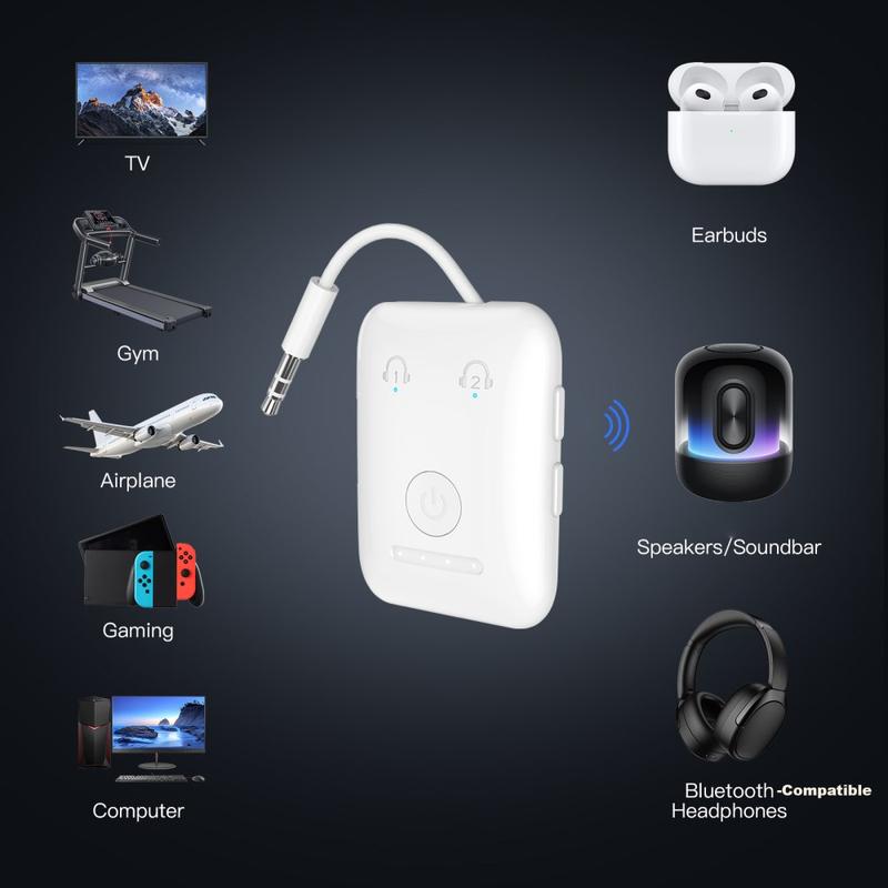 • BF02 Drahtloser AUX-Adapter für Flugzeuge, Fernseher und Fitnessstudios, Anschluss für 2 Kopfhörer