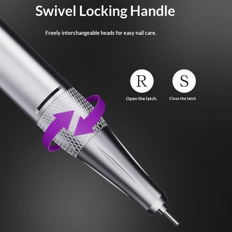 Mit einem Hochgeschwindigkeitsmotor, der bis zu 35.000 U/min erreicht, sorgt sie für einen gleichmäßigen und konsistenten Betrieb beim Formen, Feilen, Verfeinern und der allgemeinen Nagelpflege. Über das LCD-Display lassen sich Drehzahl, Akkustand, Drehrichtung und Pausenstatus leicht überwachen, während der Schnellverschlussgriff einen einfachen Bohrerwechsel ohne zusätzliches Werkzeug ermöglicht. Der wiederaufladbare Akku ermöglicht eine Betriebsdauer von bis zu 8 Stunden und eignet sich somit ideal für längere Anwendungen zu Hause, im Salon oder unterwegs.