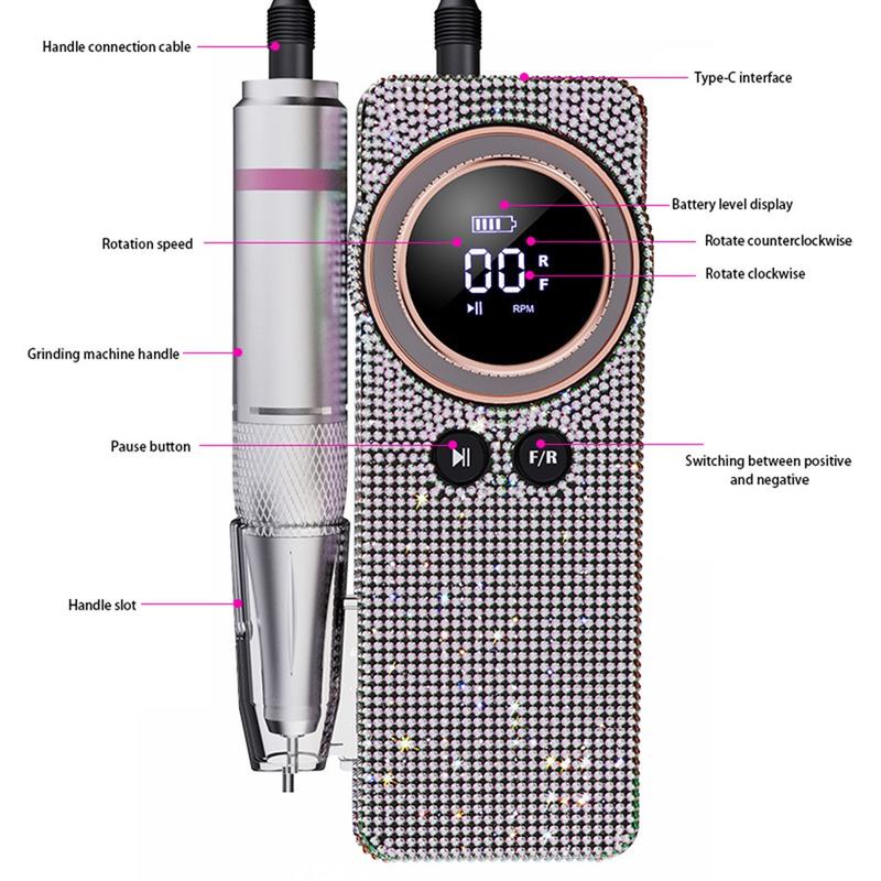 • BLUEQUE BQ-108 Elektrische Nagelfeile im Diamant-Design für Gel und Acryl - 35.000 U/min, wiederaufladbar, mit LCD-Display