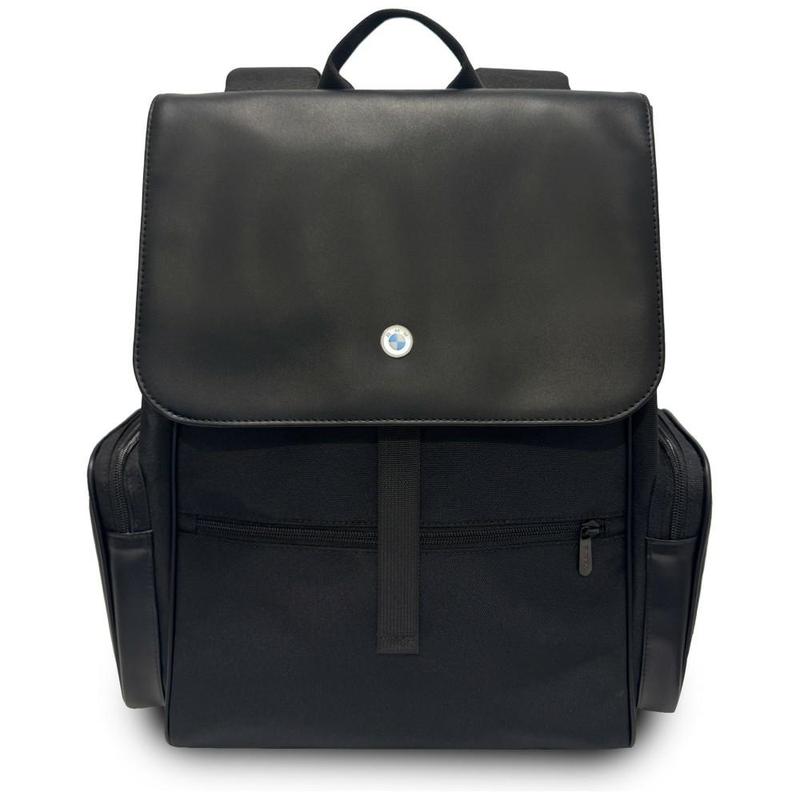 • BMW Rucksack mit Seitentaschen und Metalllogo für Laptops bis zu 15 Zoll - Laptop-Rucksack aus Nylon und PU