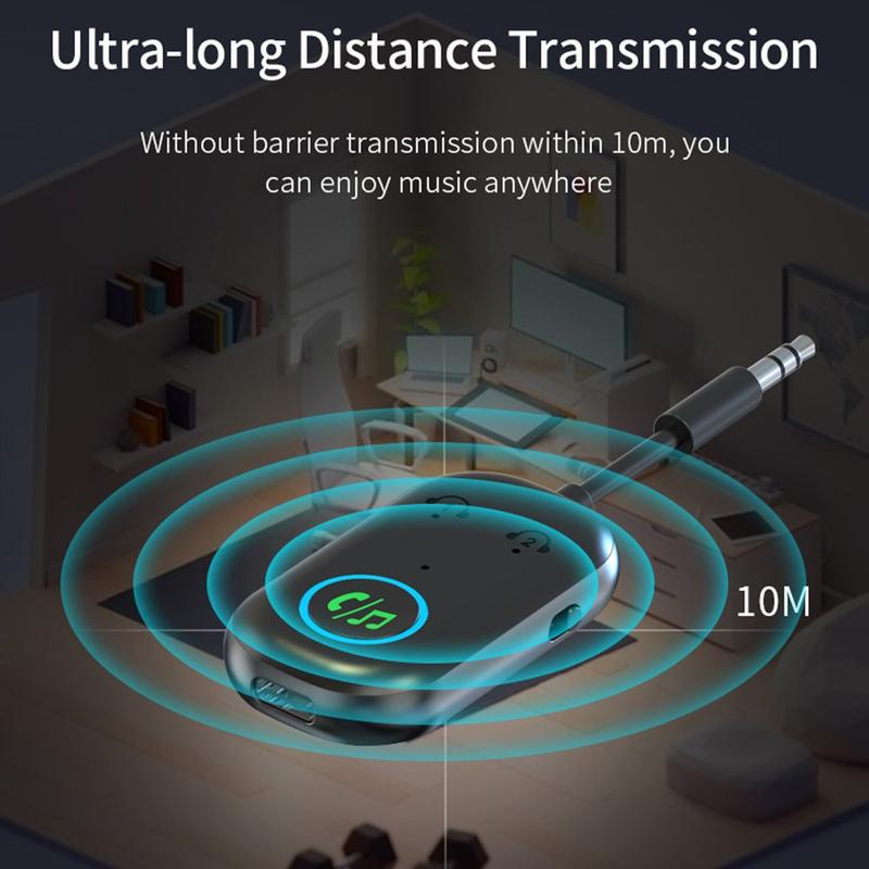 - Empfänger- und Sendemodi: Verwandeln Sie ein AUX-in-Autosystem oder eine ältere Stereoanlage in einen Bluetooth-Empfänger, oder wechseln Sie in den Sendermodus, um von Nicht-Bluetooth-Geräten zu streamen.