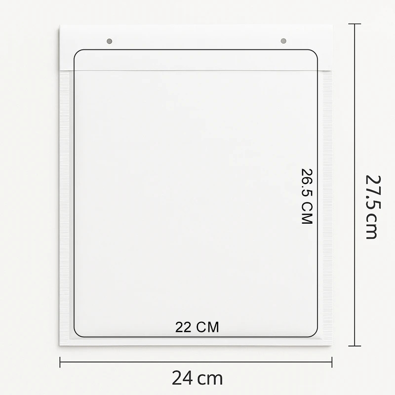 Der Umschlag passt in das Format E5 und hat Außenmaße von 240x275mm und Innenmaße von 220x265mm.