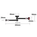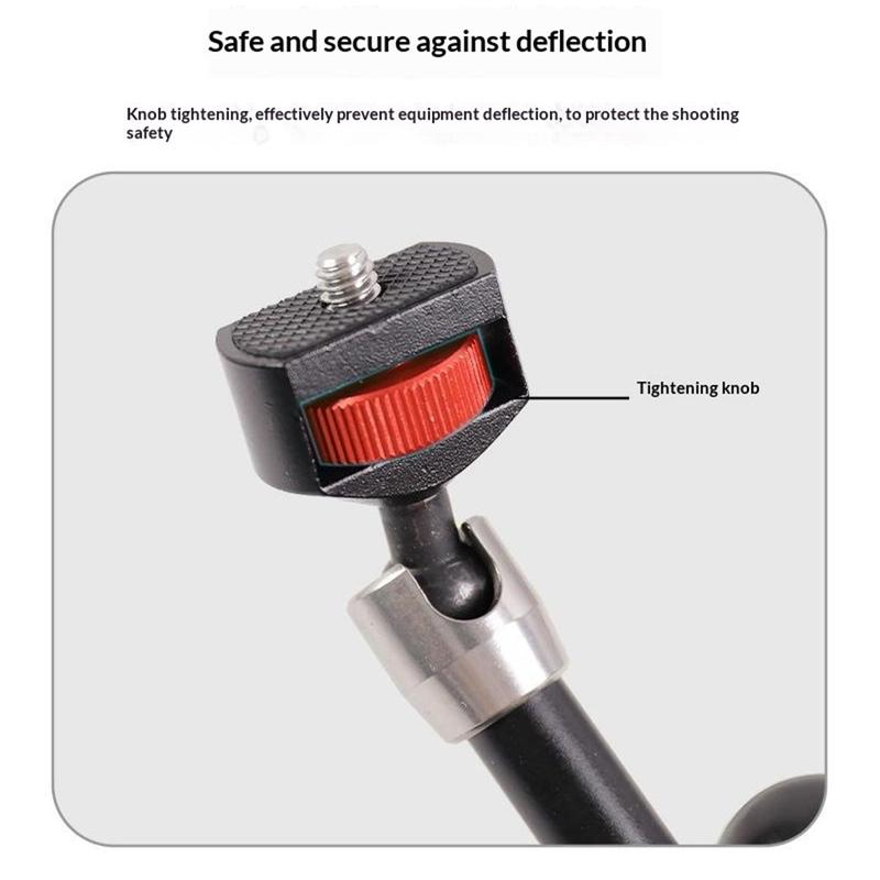 Das Design mit zwei Kugelgelenken ermöglicht eine 360°-Verstellung für eine präzisere Positionierung, während das standardmäßige 1/4"-Gewinde an beiden Enden die Kompatibilität mit einer Vielzahl von Geräten gewährleistet. Der aus einer Aluminiumlegierung gefertigte Arm bietet eine solide und langlebige Konstruktion und ist gleichzeitig leicht genug für den einfachen Transport und den täglichen Gebrauch.