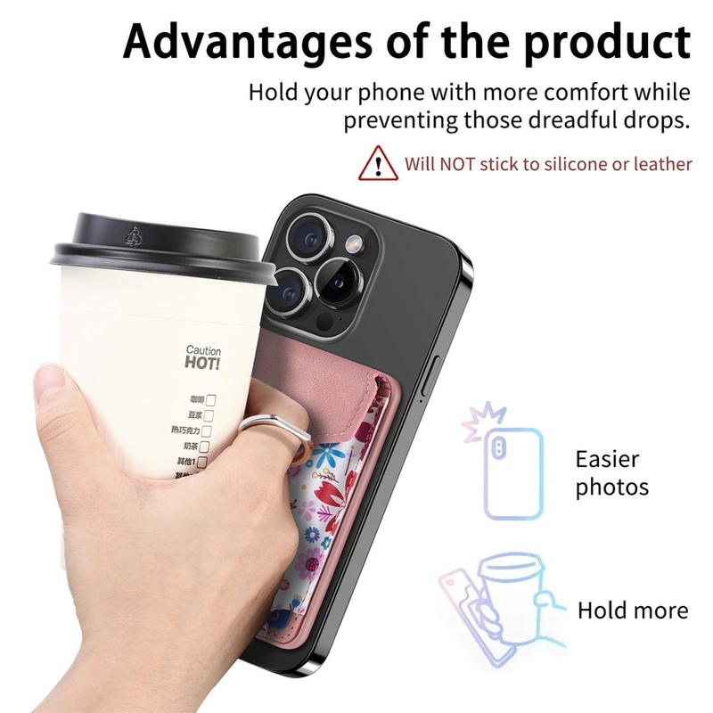 Dieser Kartenhalter ist ideal für Benutzer, die praktisch sein wollen, ohne auf Stil zu verzichten. Er bewahrt Ihre Karten sicher auf, verbessert die Handhabung des Telefons mit dem Ringhalter und bietet dank der Kickstand-Funktion zusätzlichen Komfort beim Freisprechen. Die starke Magnetbefestigung sorgt für Sicherheit im täglichen Gebrauch, auch unterwegs.
