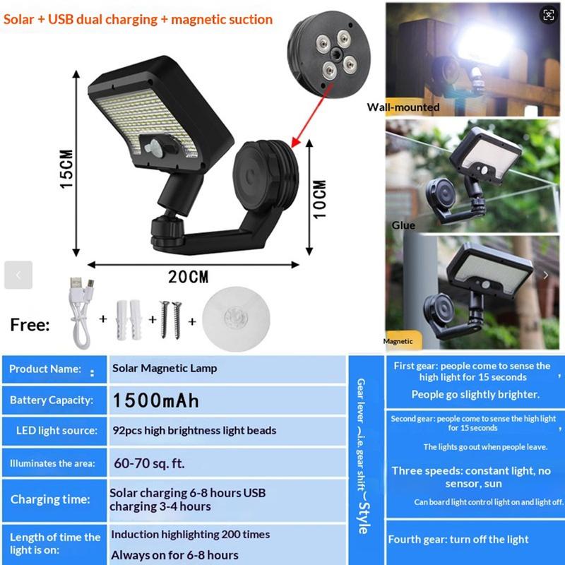 Beleuchten Sie Außenbereiche effizienter mit der magnetischen Wandleuchte CCP0144 mit 92 LEDs und Bewegungssensor. Diese Solarleuchte wurde für Gärten, Terrassen, Wege, Einfahrten, Zäune, Eingänge und andere Außenbereiche entwickelt und vereint intelligente Bewegungserkennung, flexible Installation und wetterfeste Bauweise in einer praktischen Beleuchtungslösung. Ihr LED-Array mit 92 LEDs sorgt für helle Beleuchtung, wenn Sie sie am dringendsten benötigen, und trägt so zur Verbesserung der Sichtverhältnisse und der Sicherheit im Außenbereich bei.