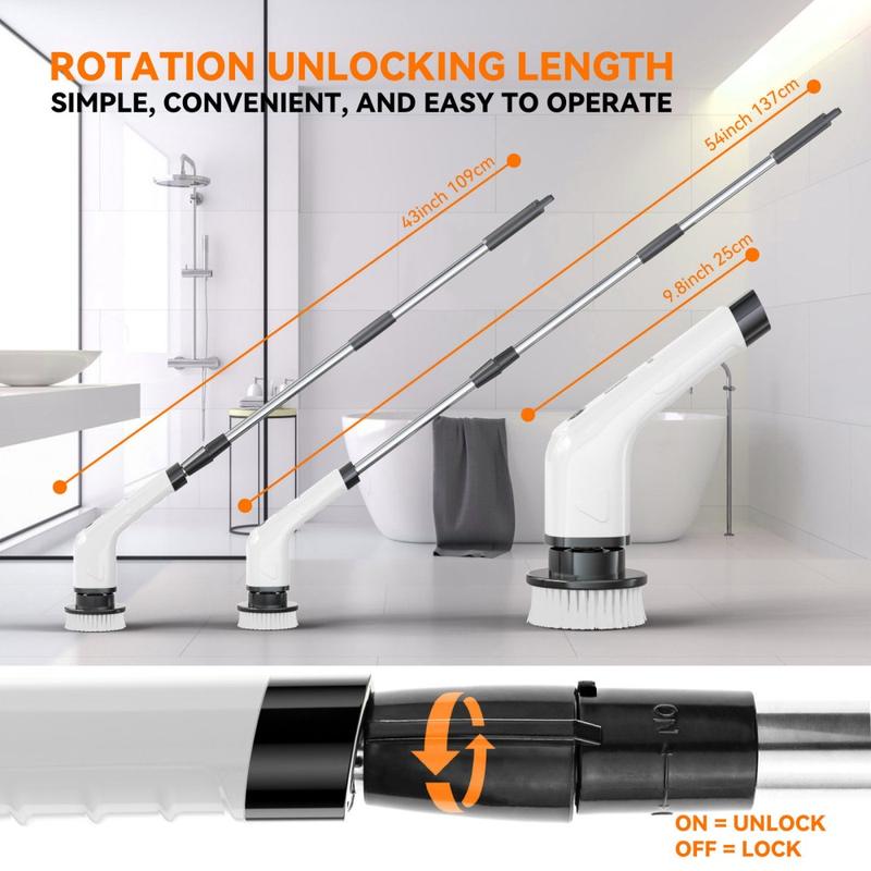 CLE-04 Schnurlose elektrische Reinigungsbürste mit Verlängerungsgriff - 8-in-1 rotierender Schrubber, USB-C wiederaufladbar, IPX7 wasserdicht