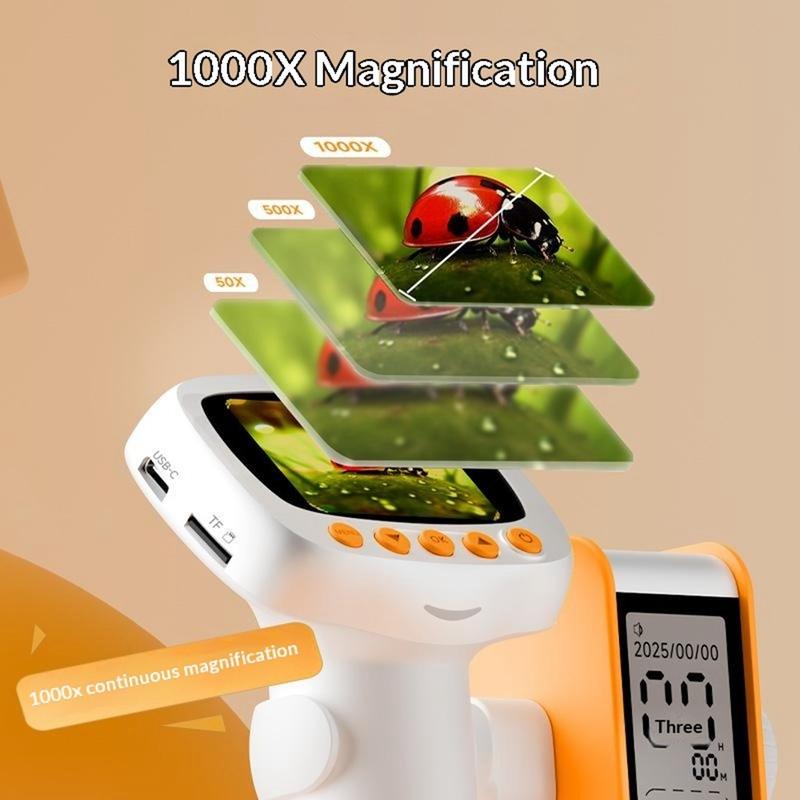 • CM5 2-Zoll-HD-Digitalmikroskop - 1000faches elektronisches Mikroskop mit verstellbarer Höhe, Wecker und Fotofunktion