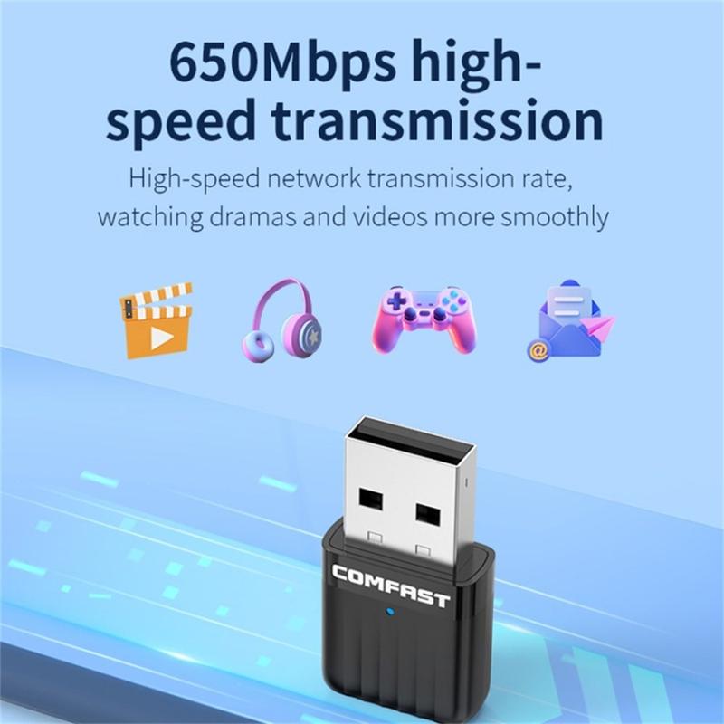 Genießen Sie schnellere und stabilere Internetverbindungen mit dem COMFAST CF-811ACV3 Dual-Band WiFi Adapter. Er ist kompakt, leistungsstark und Plug-and-Play-fähig und bietet eine drahtlose Geschwindigkeit von bis zu 650 Mbit/s im 2,4-GHz- und 5,8-GHz-Band - ideal für Streaming, Spiele und das tägliche Surfen auf Ihrem Desktop oder Laptop.