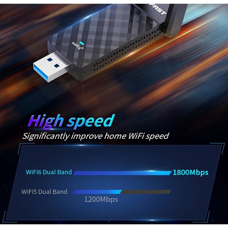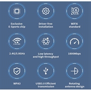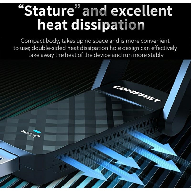 Erweitern Sie Ihren PC oder Laptop mit ultraschnellen und stabilen Verbindungen mit dem COMFAST CF-952AX V2 WiFi 6 USB Adapter. Mit einer Dual-Band-Geschwindigkeit von bis zu 1800 Mbit/s sorgt dieser Plug-and-Play-Adapter für niedrige Latenzzeiten und eine starke Signalabdeckung - perfekt für Streaming, Spiele und Remote-Arbeit.