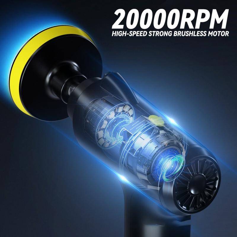 Mit dem tragbaren kabellosen Autopolierer CP001 können Sie Ihr Auto schneller und kontrollierter polieren. Er wurde zum Wachsen, Polieren und Entfernen von leichten Schleifspuren entwickelt und ist ein praktisches Werkzeug für die Autopflege zu Hause - ohne lästige Kabel. Die kabellose Bauweise vermeidet Kabelgewirr und macht es sicherer und einfacher, sich im Fahrzeug zu bewegen. Mit 3 Geschwindigkeitsstufen und einem bürstenlosen Motor können Sie die Geschwindigkeit an die jeweilige Aufgabe anpassen, vom sanften Wachsen bis zum intensiven Polieren. Die eingebaute LED-Taschenlampe verbessert die Sichtbarkeit in Garagen, in schattigen Bereichen und bei abendlichen Reinigungsarbeiten. Mit mehreren mitgelieferten Pads/Bürstenköpfen ist er auch für andere Oberflächen wie Glas, Keramik und sogar glatte Böden geeignet, die poliert werden müssen.