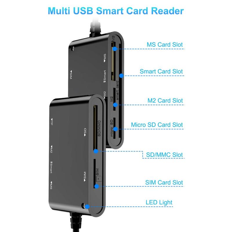 - 6-in-1-Kartenleser - Unterstützt Smart-, MS-, M2-, TF-, SIM- und SD-Karten für eine umfassende Nutzung.