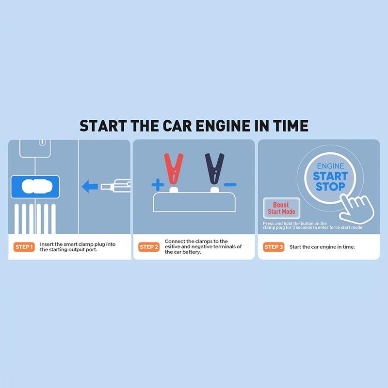 Mit einer maximalen Stromstärke von bis zu 4000 A ist das CY97 darauf ausgelegt, 12-V-Benzin- und Dieselfahrzeuge schnell und sicher zu starten. Es unterstützt Fahrzeuge mit einem Hubraum von bis zu 6,0 l bei Benzinern und 2,0 l bei Dieselfahrzeugen, wodurch es für viele PKWs und kleinere Fahrzeuge nützlich ist. Das intelligente Schutzsystem trägt zur Verbesserung der Sicherheit während des Gebrauchs bei, indem es vor Problemen wie Verpolung, Überstrom, Überhitzung, Überlastung und Kurzschluss schützt.