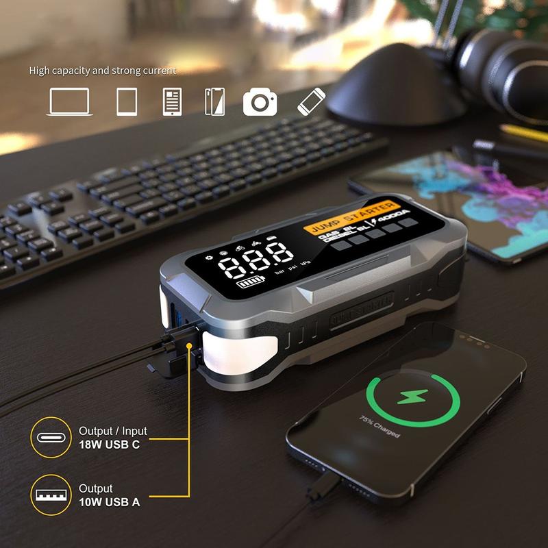CY97 Starthilfe für Autos mit Luftkompressor, Powerbank mit USB-A/USB-C - 12000mAh