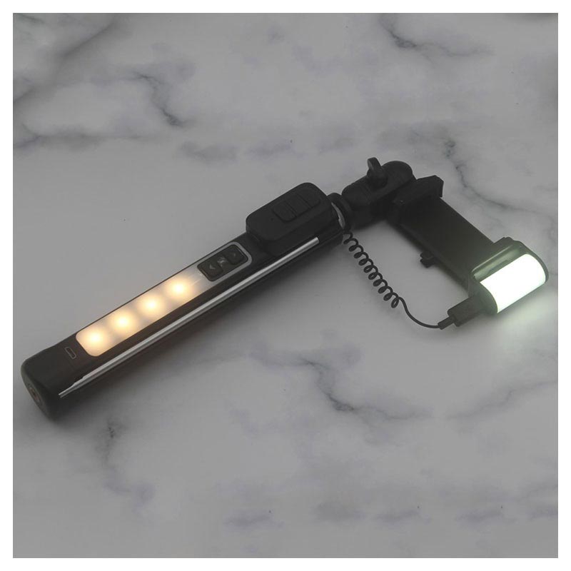 Der Selfie-Stick hat ein integriertes, praktisches Stativ, ideal für stabile Gruppenfotos, und einen abnehmbaren Bluetooth-Kameraverschluss, der das Fotografieren noch einfacher macht. Dieser erweiterbare Selfie-Stick verfügt über ein integriertes LED-Aufhelllicht, das Schatten entfernt und Ihnen die Aufnahme von Bildern auch bei schlechten Lichtverhältnissen ermöglicht.