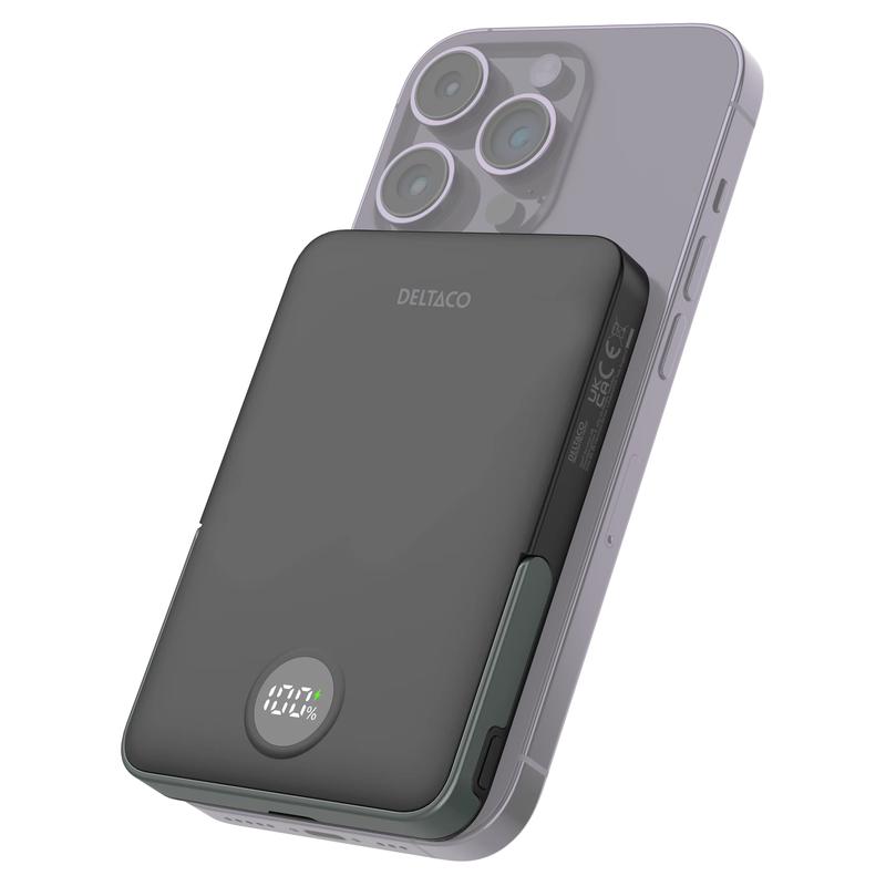 Deltaco 5000mAh magnetische kabellose Powerbank mit Ständer - tragbares Ladegerät mit PD 20 W und USB-C-Anschluss