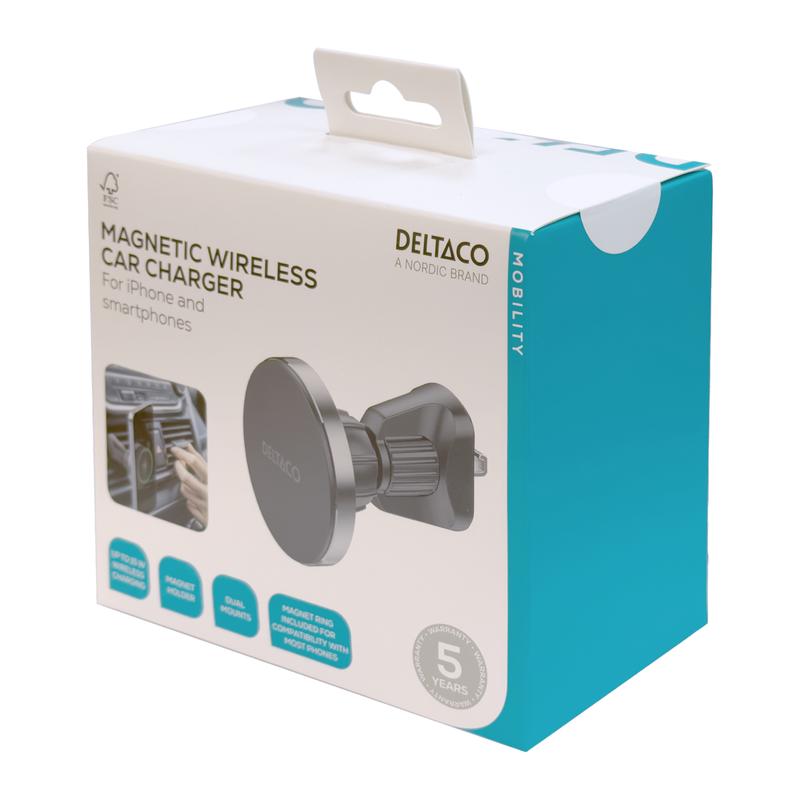 Mit dem abnehmbaren kabellosen Autoladegerät von Deltaco bleibt Ihr Smartphone während der Fahrt aufgeladen und gut sichtbar. Dieses auf Komfort und Flexibilität ausgelegte, Qi2-kompatible Ladegerät bietet bis zu 15W kabellose Ladeleistung für kompatible Geräte und hält Ihr Smartphone dank eines integrierten Magneten sicher an seinem Platz.