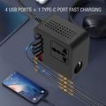 Digitaler Wechselrichter für das Auto - 12V/24V DC zu 110V/220V AC Konverter mit USB-C, USB-A, und AC Steckdose 150W