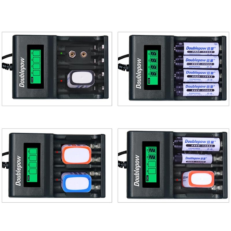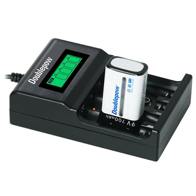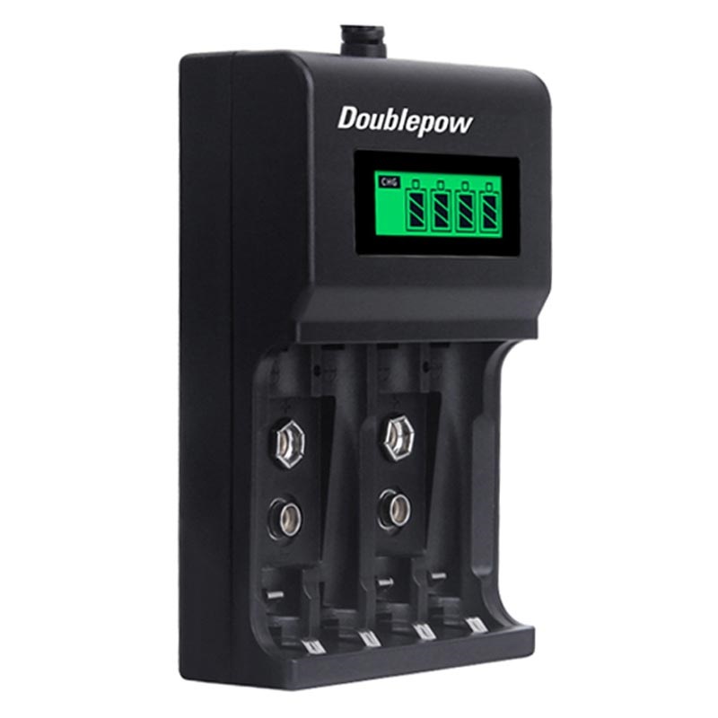Das Schnellladegerät Doublepow DP-UK95 kann bis zu vier AA/AAA- oder bis zu zwei 9V-Blockbatterien gleichzeitig aufladen. Es ist mit einem LCD-Display ausgestattet, das den Ladezustand von AA/AAA-Batterien anzeigt, während die LED-Anzeige den Ladestatus von 9V-Batterien anzeigt.