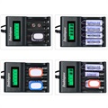 - Sie können bis zu 4 AA / AAA-Batterien oder eine 9-V-Batterie gleichzeitig aufladen