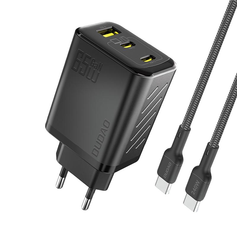 Dudao A29C 65W GaN Wandladegerät - 3-Port Schnellladegerät (2× USB-C + USB-A) mit 1 m USB-C zu USB-C Kabel, PD & QC Unterstützung
