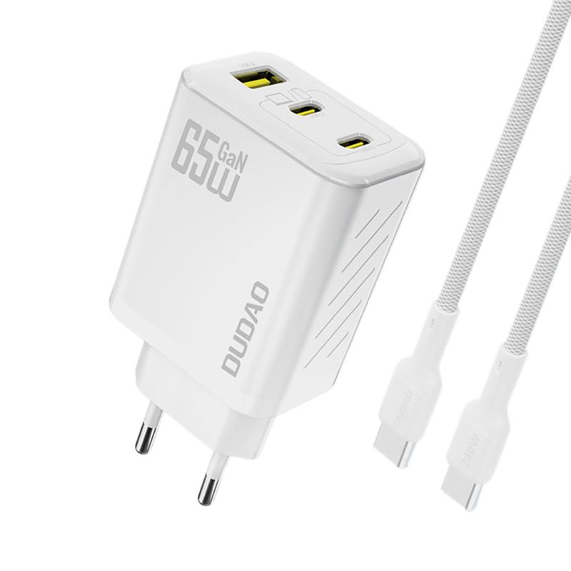 Dudao A29C 65W GaN Wandladegerät - 3-Port Schnellladegerät (2× USB-C + USB-A) mit 1 m USB-C zu USB-C Kabel, PD & QC Unterstützung