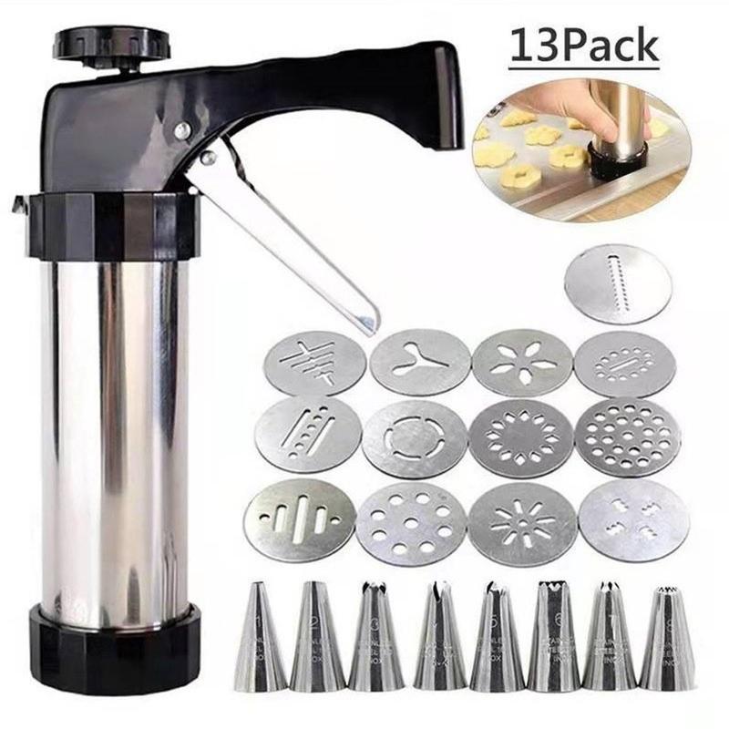 Edelstahl-Kekspressen-Pistolen-Set - 8 Düsen und 13 Scheiben