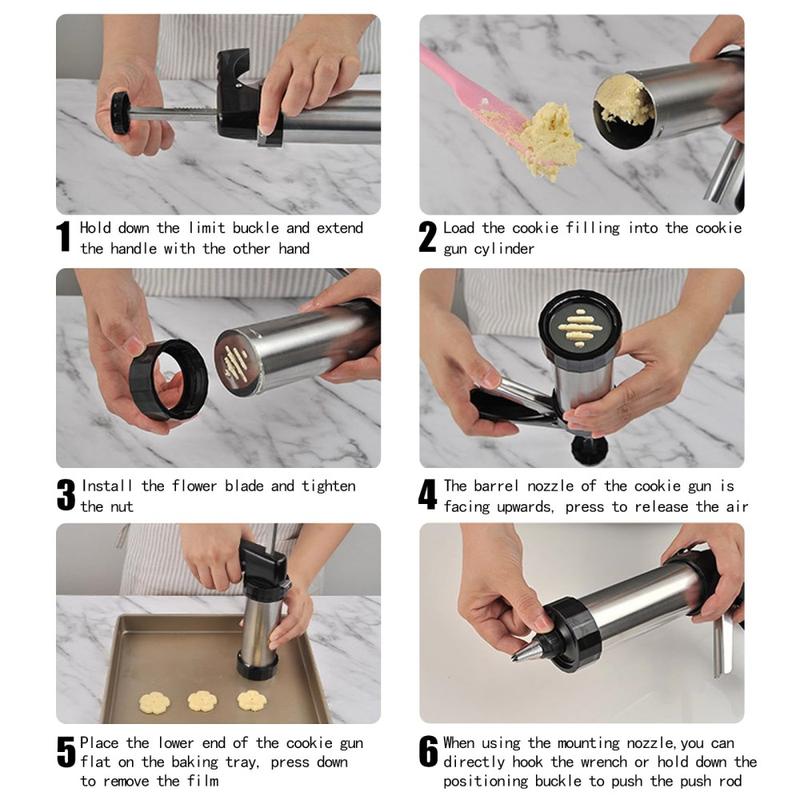 • Edelstahl-Kekspressen-Backset - 8 Düsen und 13 Scheiben, BPA-frei