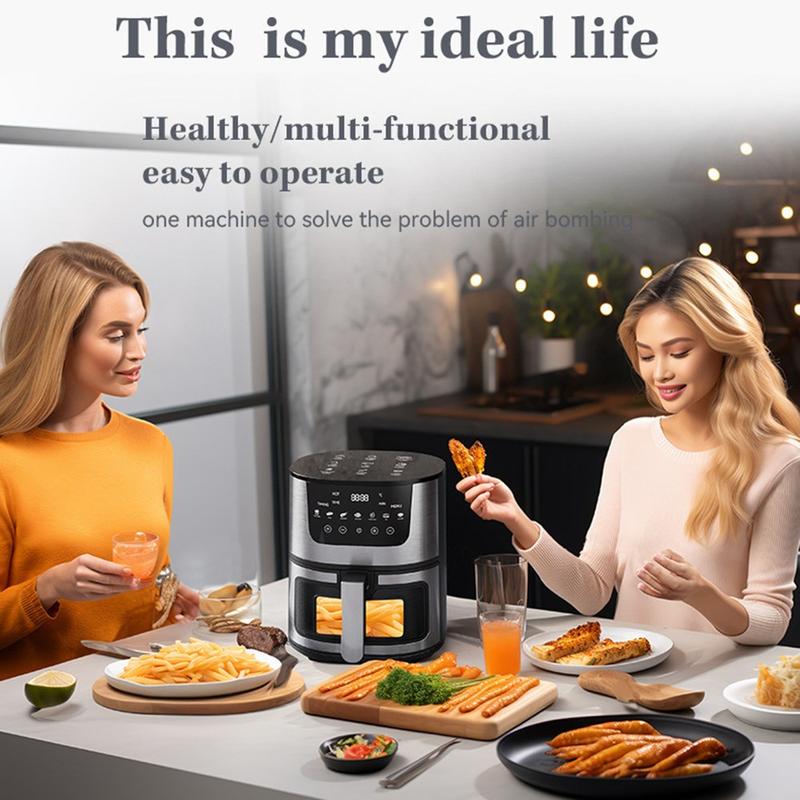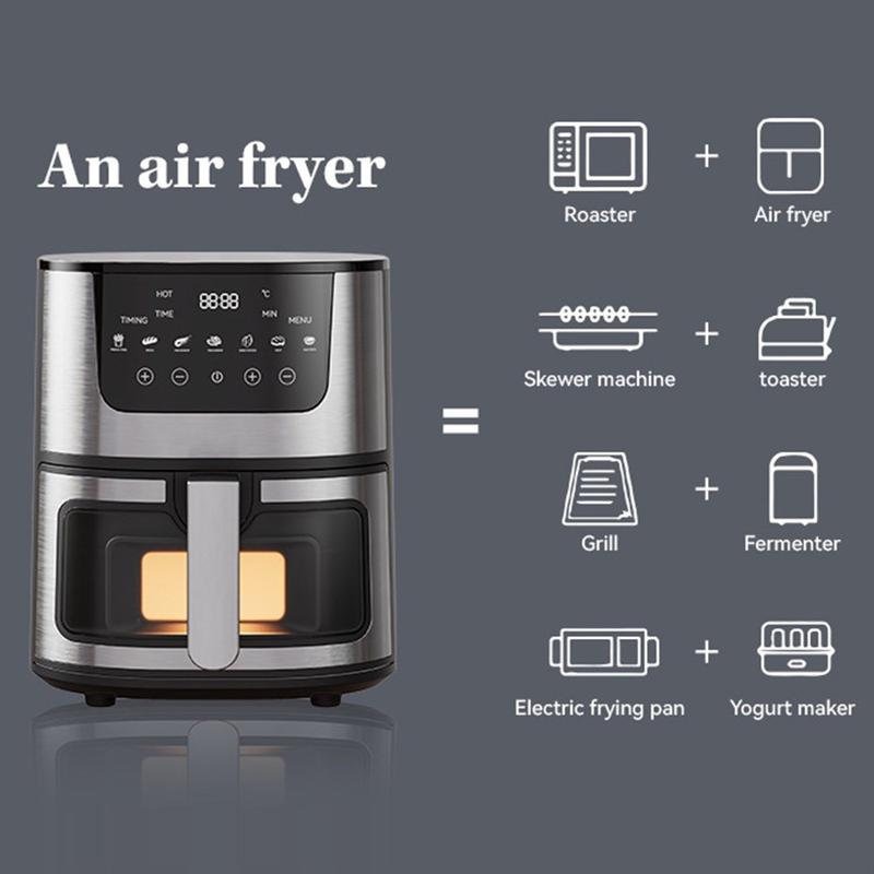 7L Großes Fassungsvermögen 1500W Multifunktions-Edelstahl-Luftfritteuse mit Sichtfenster - EU-Stecker