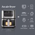 Diese Heißluftfritteuse vereint Kapazität, Leistung und Vielseitigkeit und ist damit eine praktische Wahl für jede moderne Küche. Das leistungsstarke Heizsystem sorgt für gleichbleibende Ergebnisse, während der antihaftbeschichtete Innenraum und das Sichtfenster die Benutzerfreundlichkeit erhöhen. Sie wurde entwickelt, um den Ölverbrauch zu reduzieren, ohne den Geschmack zu beeinträchtigen, und ist ein hervorragendes Gerät für gesünderes, effizientes Kochen.
