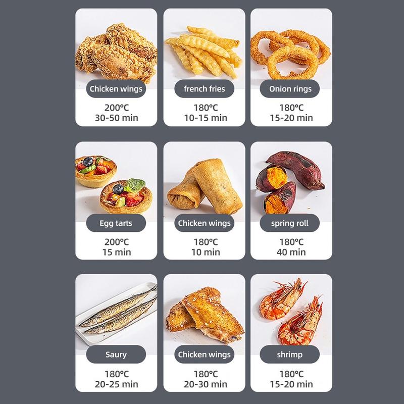 - Zubereitung von Familiengerichten wie Hühnchen, Fisch, Gemüse oder Pommes frites