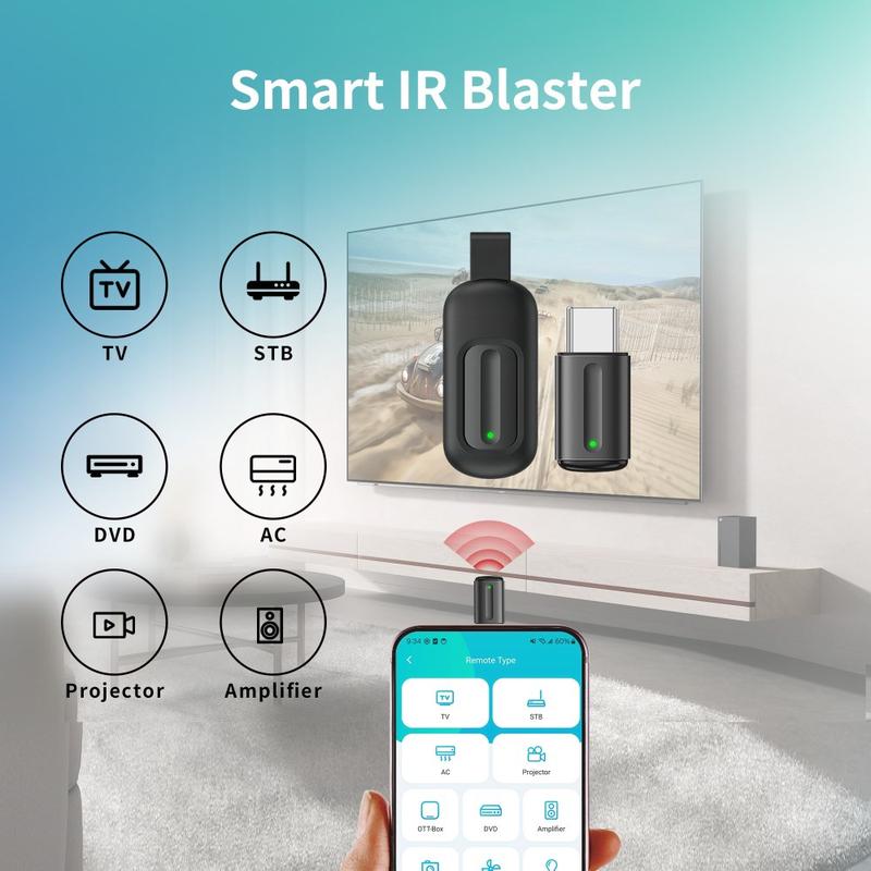Keine Batterien, kein Aufladen und keine App-spezifischen Einschränkungen - schließen Sie den Adapter einfach an den Lightning/Type-C-Anschluss Ihres Geräts an und genießen Sie sofortige Kontrolle über IR-basierte Heimelektronik.