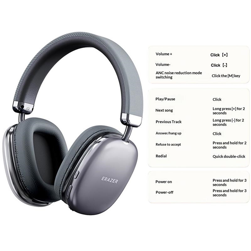 Der ERAZER EM-Z03 ist eine gute Wahl für alle, die Komfort, solide Klangqualität und nützliche Alltagsfunktionen in einem Headset suchen. Die ANC-Funktion hilft Ihnen, Musik und Anrufe mit weniger Ablenkungen zu genießen, während die lange Akkulaufzeit selteneres Aufladen bedeutet. In Kombination mit der anpassbaren Passform und den weichen Ohrpolstern eignen sich diese Kopfhörer gut für längere Hörsitzungen zu Hause, bei der Arbeit oder auf Reisen.
