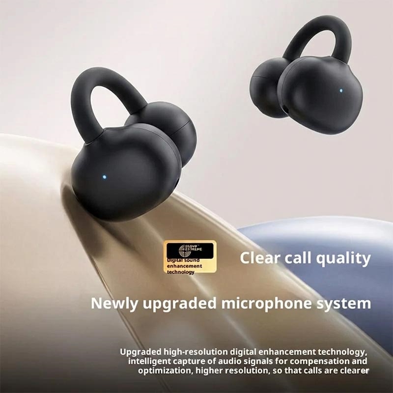Genießen Sie mit den Erazer EX01 Clip-On-Bluetooth-Ohrhörern mehr Komfort im Alltag. Dank ihrer offenen Clip-On-Konstruktion können Sie mit diesen kabellosen Ohrhörern Musik hören und Telefonate führen, während Sie Ihre Umgebung besser wahrnehmen - eine praktische Wahl für Sport, Spaziergänge, den Weg zur Arbeit und den täglichen Gebrauch.
