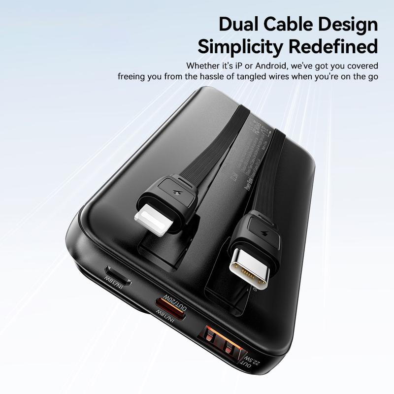 Ausgestattet mit integrierten Type-C- und Lightning-Kabeln, macht diese Powerbank das Mitführen separater Kabel überflüssig - ideal für Nutzer mit mehreren Geräten.