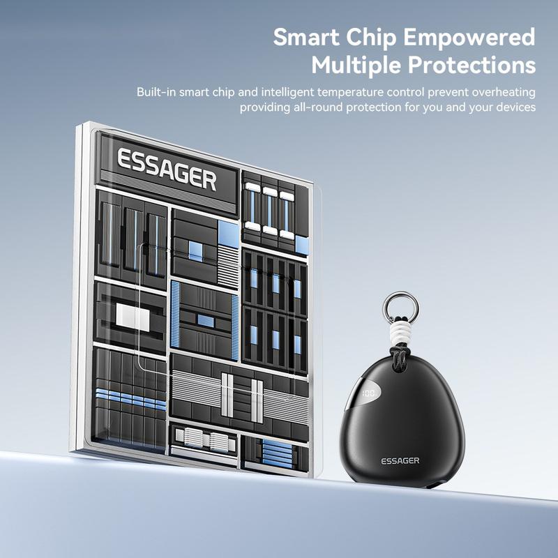 Die ESSAGER 10000mAh Fast Charging Power Bank bietet zuverlässige Energie für unterwegs mit einem integrierten einziehbaren 70cm Typ-C Kabel. Sie wurde für Reisen, Pendler und den Einsatz im Freien entwickelt und liefert bis zu 22,5 W Schnellladung, während sie dank des integrierten Karabinerclips kompakt, leicht und einfach zu tragen ist.