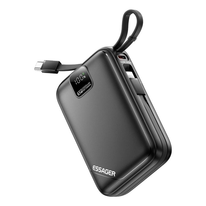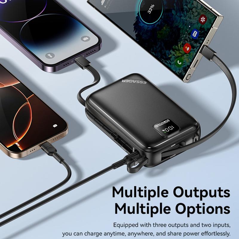 Die ESSAGER PD 65W Powerbank kombiniert schnelles Laden auf Laptop-Niveau, zwei eingebaute Kabel, hohe Kapazität und intelligente LED-Überwachung - die ultimative All-in-One-Ladelösung für Reisen, Arbeit und den Alltag.