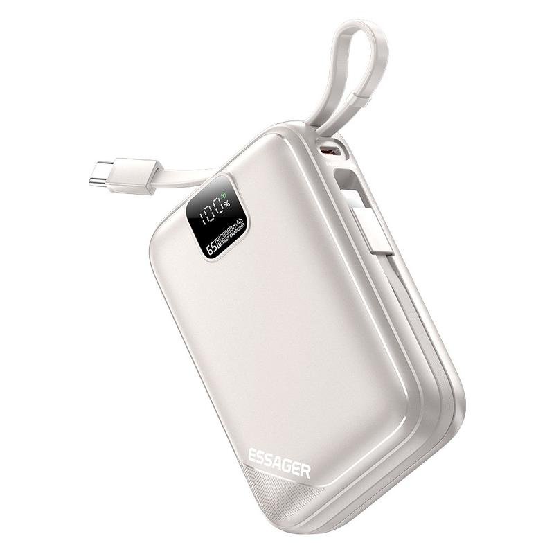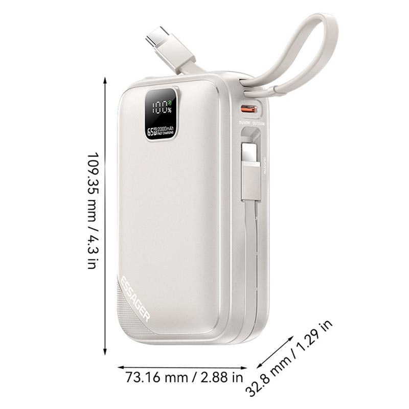 Essager 20000mAh PD 65W Schnelllade-Powerbank - tragbarer externer Akku mit LED-Anzeige, integriertem Lightning- und USB-C-Kabel