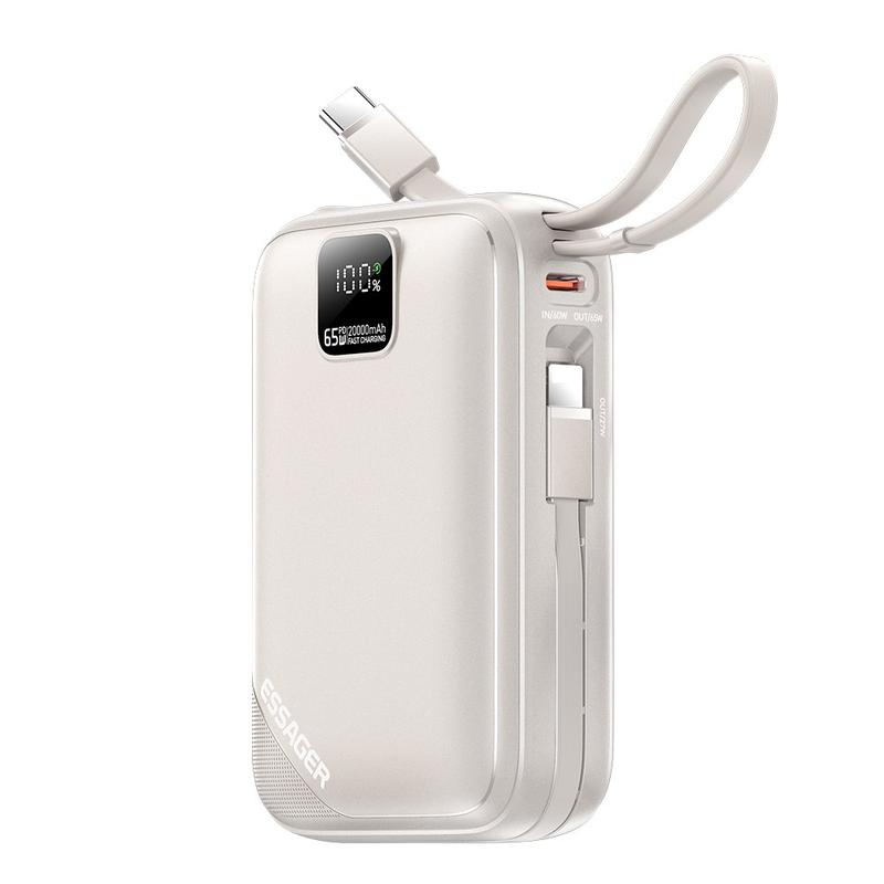 Die ESSAGER PD 65W Powerbank kombiniert schnelles Laden auf Laptop-Niveau, zwei eingebaute Kabel, hohe Kapazität und intelligente LED-Überwachung - die ultimative All-in-One-Ladelösung für Reisen, Arbeit und den Alltag.