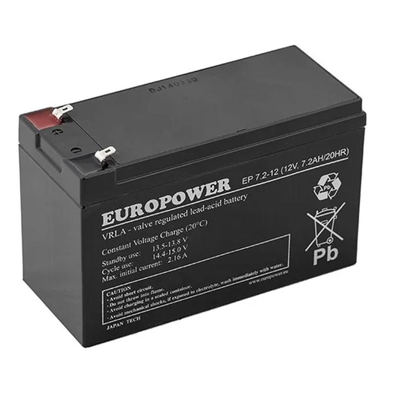 • Europower EP 7,2–12 AGM VRLA versiegelte wiederaufladbare Batterie mit T2-Anschlüssen – 12 V, 7,2 Ah