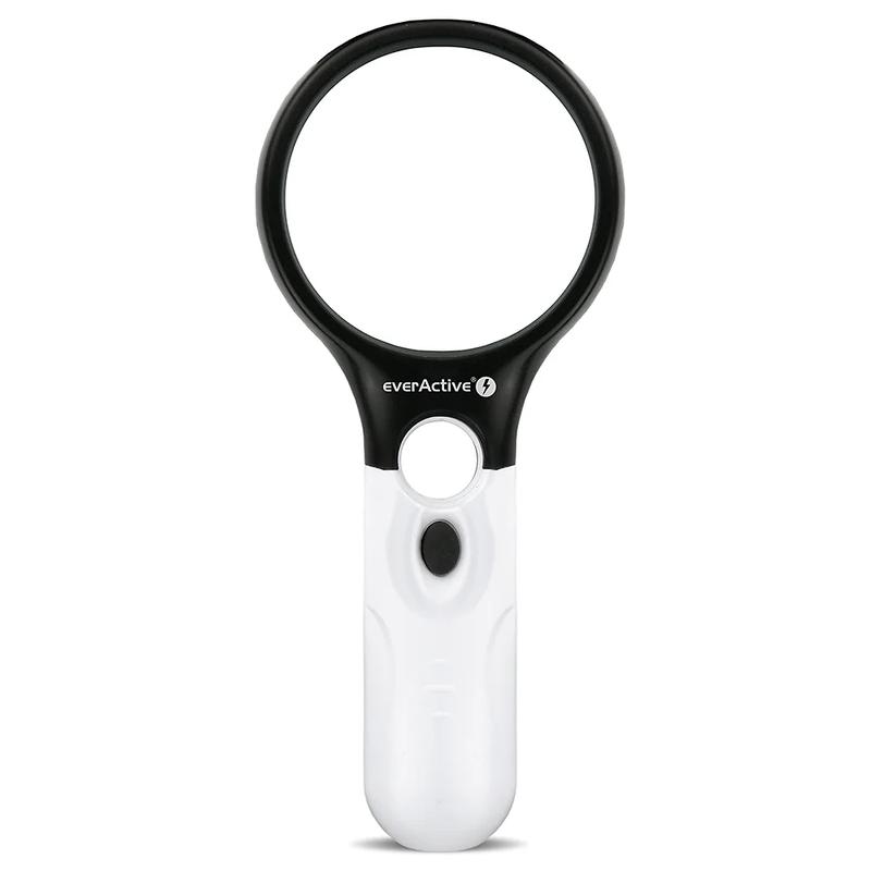 EverActive MG-01 Lupe mit LED-Hintergrundbeleuchtung - 3x große Linse und 45x Mini-Linse, 3x AAA Batteriebetrieb
