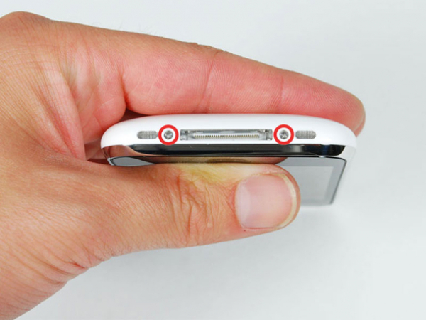 Entfernen Sie zwei 3.7mm # 00 Kreutzschlitzschrauben neben dem Dockanschluss des iPhones.