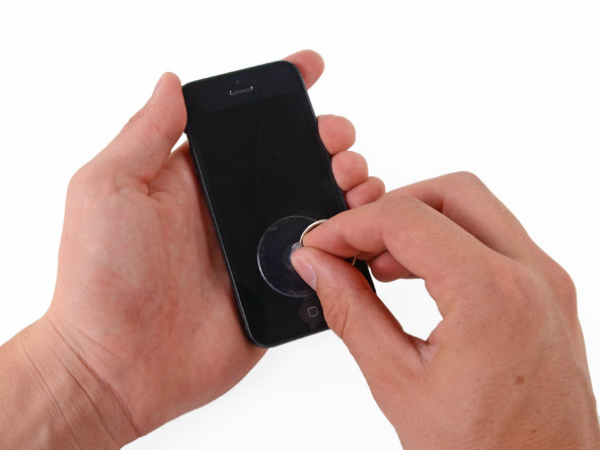 Drücken Sie einen Saugnapf auf den Bildschirm direkt über der Home-Taste.