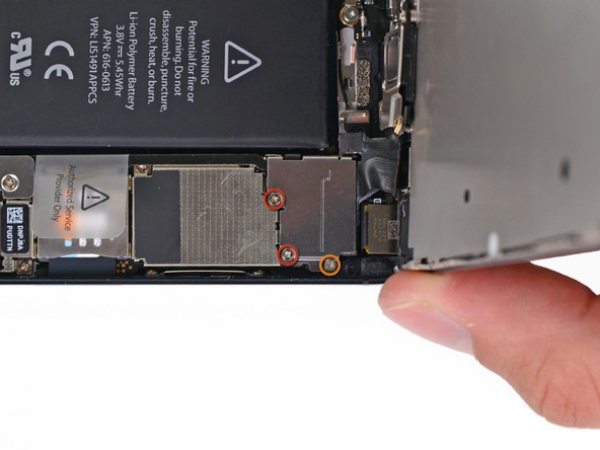 Wenn Sie Schwierigkeiten beim Legen des Öffnungswerkzegs unter die Kontaktstellen haben, schieben Sie das Werkzeug über die Kontakte und drücken Sie vorsichtig die rechte Seite, um den Kleber zu lösen. Dann können Sie Sie es wieder versuchen.