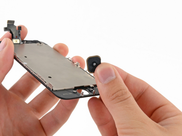 Verwenden Sie das Öffnungswerkzeg aus Kunststoff, um den Rand des Home-Taste-Flachkabels von dem Display zu entfernen.4