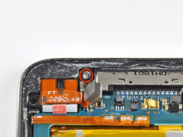 Durch den Bau des 4. Generation Touch kann das Digitizer-Kabel nicht getrennt werden, wenn die Hauptplatine nicht entfernt ist. Seien Sie besonders vorsichtig beim Umgang mit der Vorderseite, weil diese mit dem Rest des Touchs durch das sehr empfindliche Digitizer-Kabel verbunden ist.