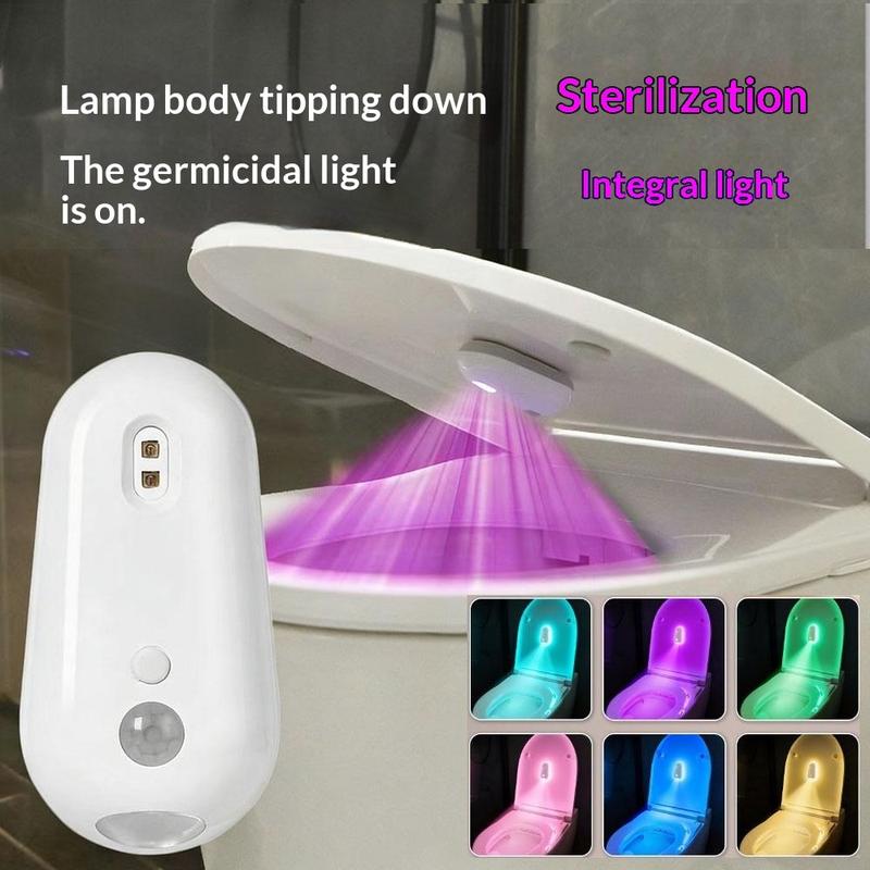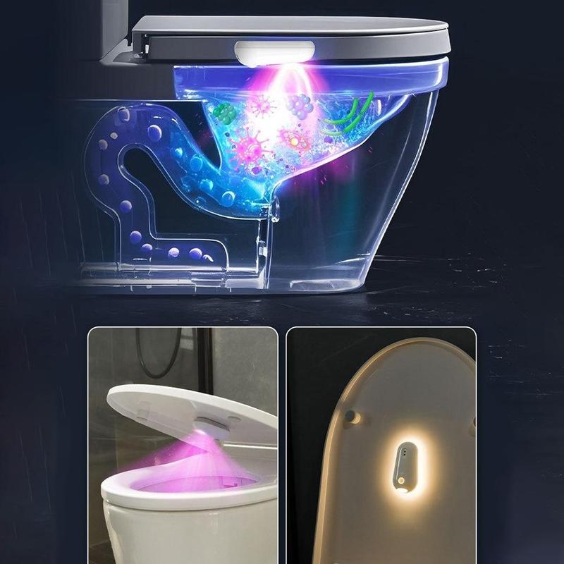 • F21 RGB-Bewegungssensor-Toilettenleuchte mit UV-Sterilisation - Wiederaufladbares Badezimmer-Nachtlicht, mehrfarbige LED, USB-C-Aufladung
