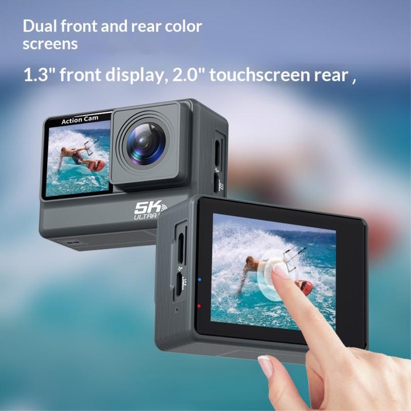 F308AATR Dual-Screen-Actionkamera - 5K-HD-Sportkamera mit 6-Achsen-Stabilisierung, WLAN und wasserdichtem Gehäuse