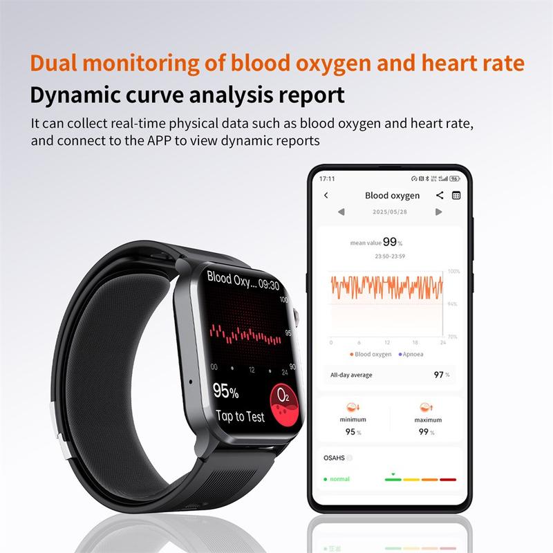 Das große 2,1-Zoll-IPS-Display sorgt für klare Lesbarkeit, während die intuitive Full-Touch-Benutzeroberfläche die Navigation durch die Gesundheitsdaten einfach und für den täglichen Gebrauch zugänglich macht.