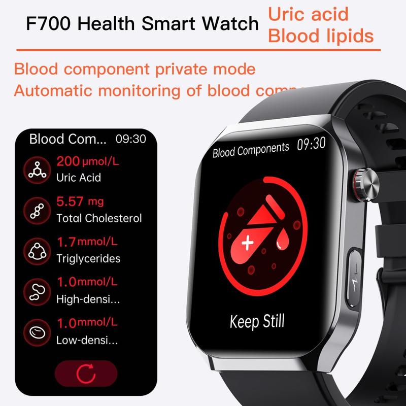 Die F700 Smart Watch wurde für Benutzer entwickelt, die eine umfassende Gesundheitsüberwachung, Sicherheitsfunktionen und Fitness-Tracking in einer eleganten Armbanduhr wünschen. Ausgestattet mit EKG, Analyse der Körperzusammensetzung, HRV-Berichten und Rotlicht-Blutsauerstoffüberwachung bietet sie einen professionellen Überblick über Ihre Gesundheit. Fortschrittliche Sicherheitstools wie SOS und Sturzerkennung sorgen für zusätzliche Sicherheit, während wissenschaftliche Schlafüberwachung und Stressmanagement Ihnen helfen, jeden Tag das Gleichgewicht zu halten. Mit 52 Sportmodi, anpassbaren Zifferblättern und Bluetooth 5.3-Konnektivität ist die F700 ebenso vielseitig wie leistungsstark - und damit der perfekte Partner für einen aktiven Lebensstil und den Alltag.